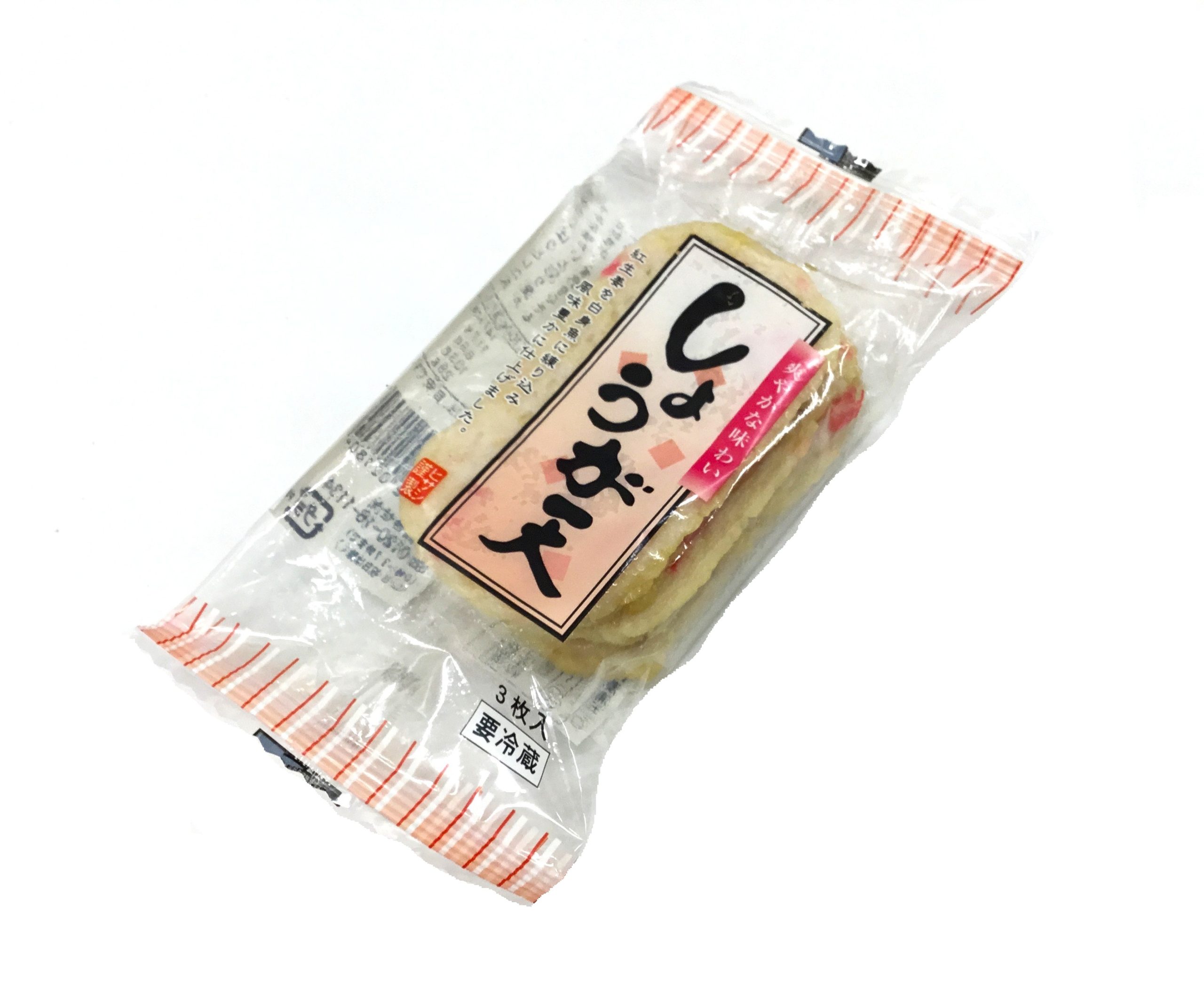 魚肉(輸入)、卵白、生姜、でん粉、食塩、砂糖、大豆たん白、植物油、魚肉エキス/加工でん粉、調味料(アミノ酸等)、pH調整剤、保存料(ソルビン酸)、着色料(赤三)、(一部に卵・えび・かに・大豆を含む)